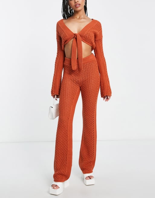 Asos Design Knit Wide Leg Beach Pants In Orange Part Of A Set Asos